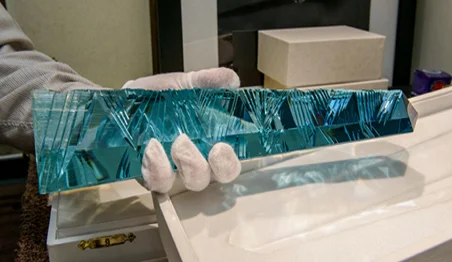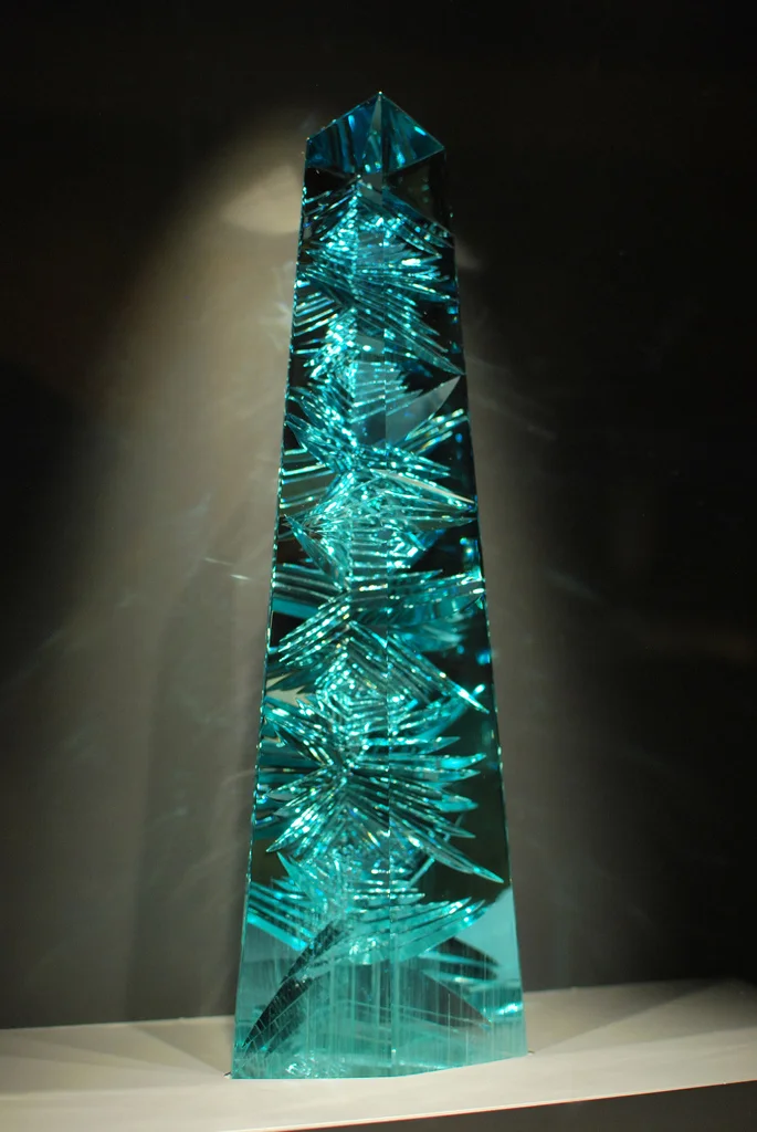 The 'Dom Pedro', weighing 57.3 lbs and cut in Idar-Oberstein, Germany in 1992 by the gemstone designer Bernd Munsteiner, is the largest single piece of aquamarine to have ever been cut (the final weight after cutting and polishing is about 5 lbs).